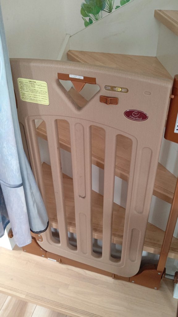 私の場合は、マンションやアパートではないのでこのような金具は使用しておりませんが、似たようなもので階段落下防止のアイテムは購入し使用しております。☟ 下の写真です。このような落下防止アイテムが無ければ何回子供が怪我をしていたか分かりません!w 相当助けられた記憶があります。